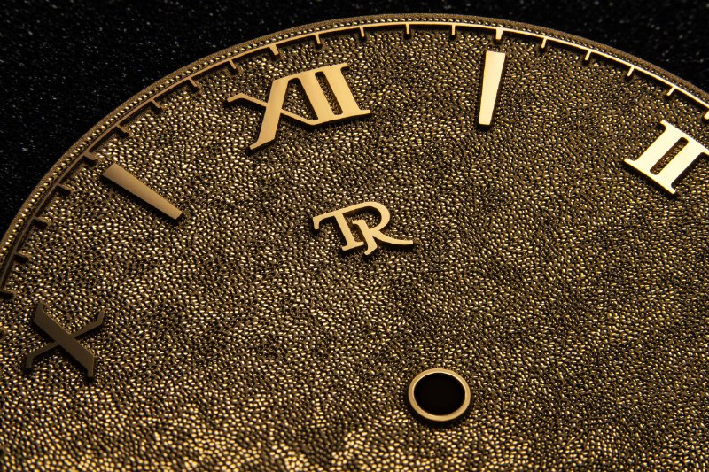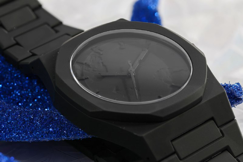 «Циферблат с 3D-текстурой ломаного камня придает часам характер и уникальность. Черный цвет выбран неслучайно — здесь он символизирует не отсутствие, а присутствие материала, который подчеркивает пустоты, усиливает игру теней и превращает каждое отражение в деталь.
