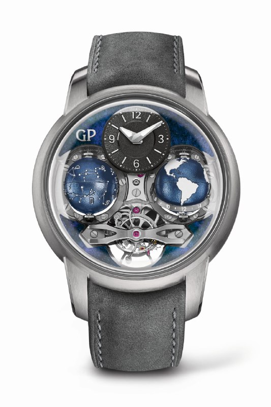 В часах установлены сапфировое стекло, выпуклое с обеих сторон, и впечатляющий циферблат, текстура которого напоминает поверхность Луны.