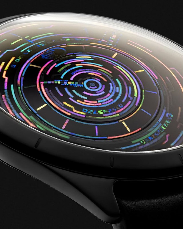 • Циферблат представляет собой выпуклый титановый диск диаметром 75 мм, покрытый вручную черным лаком (уруши) с перламутровыми вставками (раден). Центральный диск показывает часы и вращается один раз за 12 часов. Вокруг него находятся «спутники» минуты, которые делают оборот за один час, синхронно с центральным диском. На поверхности нанесены радиальные линии, исходящие из центра, имитирующие движение вихря. Линии выполнены из перламутра, повторяющего форму выпуклого циферблата. Часовая и минутная стрелки отмечены маленькими цветными квадратиками. Перламутровые вставки частично светятся в темноте за счет люма. Все элементы вращаются с помощью модуля ROCS 9.