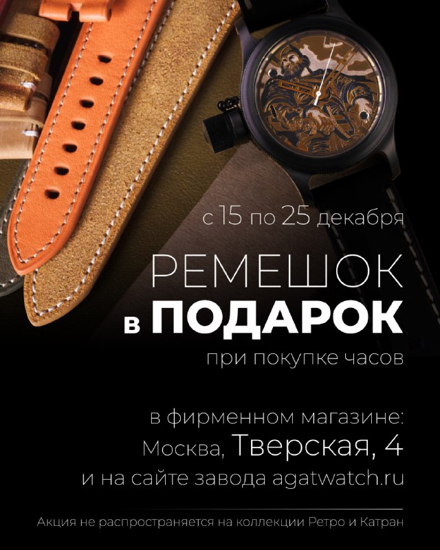 И мы с удовольствием подарим вам любой ремешок или браслет для часов по вашему выбору при покупке водолазных часов в фирменном салоне на Тверской, 4 (Москва) или в нашем интернет-магазине.