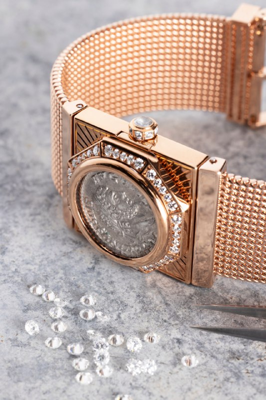 Все новинки Bvlgari! Bvlgari показал секретные часы Maglia Milanese Monete, из розового золота, на браслете миланского плетения с подлинной античной монетой 198–297 гг. н. э. с императорм Каракаллой. Внутри калибр Piccolissimo BVP100 (13,50 х 2,50 мм, вес всего 1,9 г), который предстаёт в новой версии с заводной головкой и за сапфировой задней крышкой.