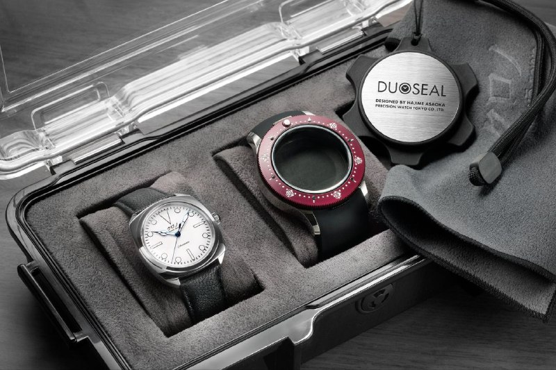 Дайвер 2-в-1 с водонепроницаемостью 300 м - свои первые часы для погружений (и не только) представил бренд Kurono Tokyo. В первом воплощении это часы-подушка 35 x 35 х 9 мм с водонепроницаемостью 100 м на кожаном ремне. И этот классический корпус можно вставить в дайверский. Он уже покрупнее: 46 мм в диаметре и 13,5 высотой (расстояние от ушка до ушка - 56,7 мм), но и водонепроницаемость вырастает до 300 м. Плюс в комплекте идет каучуковый ремешок. Внутри - Miyota 90S5 с запасом хода 40 часов.