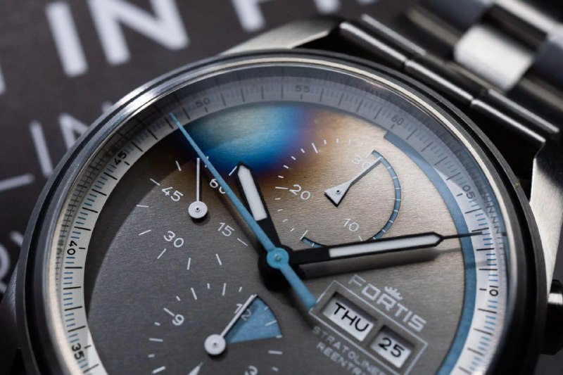 На первый взгляд может показаться, что с этими часами что-то не так. Но с Stratoliner S-41 Reentry Edition от Fortis всё в порядке: особая тепловая обработка циферблата вдохновлена входом спускаемых аппаратов в атмосферу Земли. При вхождении в плотные слои атмосферы со второй космической скоростью (~7.9 км/с) аппарат нагревается, а космонавтов защищает мощное теплозащитное покрытие.