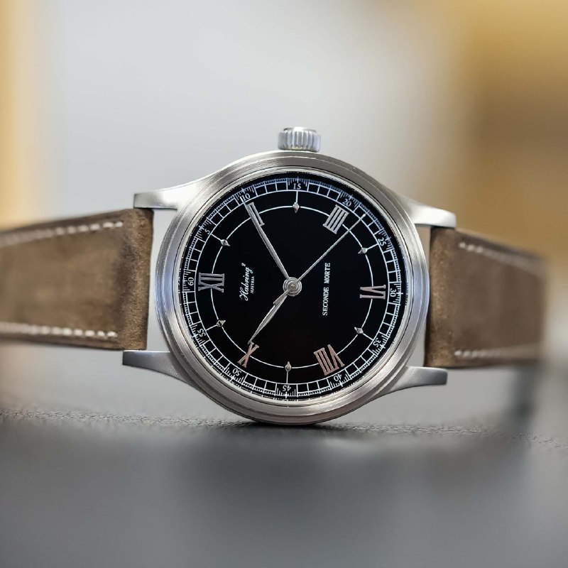 В основе - Habring Erwin с механизмом Habring² A11S с ручным заводом, частотой 28 800 пк/ч и запасом хода 48 часов. Черный лакированный циферблат явно находится под влиянием ар-деко (обратите внимание на секундную шкалу). Корпус - сталь, 38,5 х 9 мм. 33 экземпляра за 6000 евро уже распроданы.