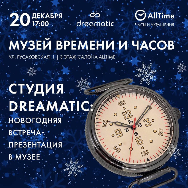 Музей Времени и Часов и Студия Dreamatic приглашают 20 декабря (суббота) в 17-00 на новогоднюю встречу с коллегами.
