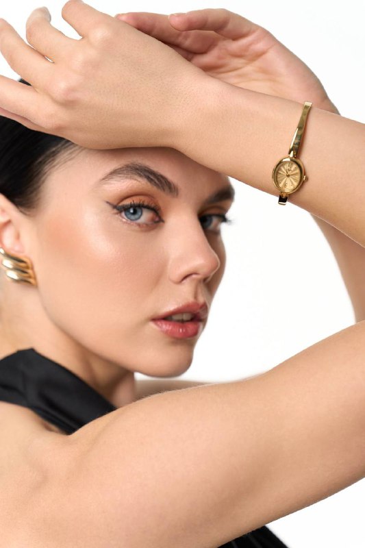 • Сталь с покрытием розового золота — тёплый и благородный образ с коричневым ремнём.
