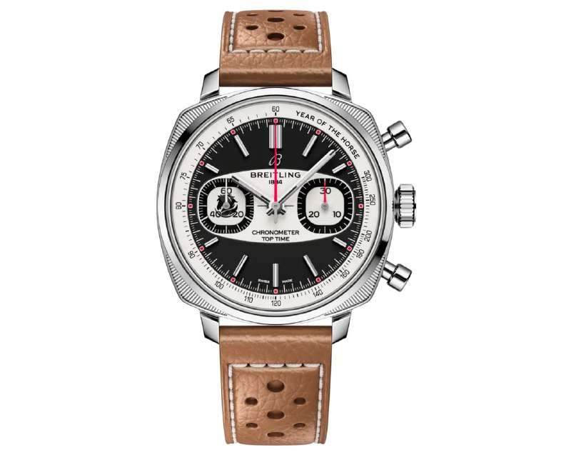 Неочевидная новинка Breitling в честь года Лошади - Top Time B01 Racing Shadow Rider, лимитка из 288 экземпляров, в стальном корпусе в форме подушки размером 38 мм. Лошадь, справедливости ради, здесь присутствует - на малом секундном счетчике и на задней крышке. На тахиметрической шкале между "12" и "2 часами" нанесена надпись Year of the Horse. Часы с черно-белым циферблатом дополнены бежевым ремешком из перфорированной телячьей кожи. Оснащаются часы калибром Breitling 01 с запасом хода 70 часов.