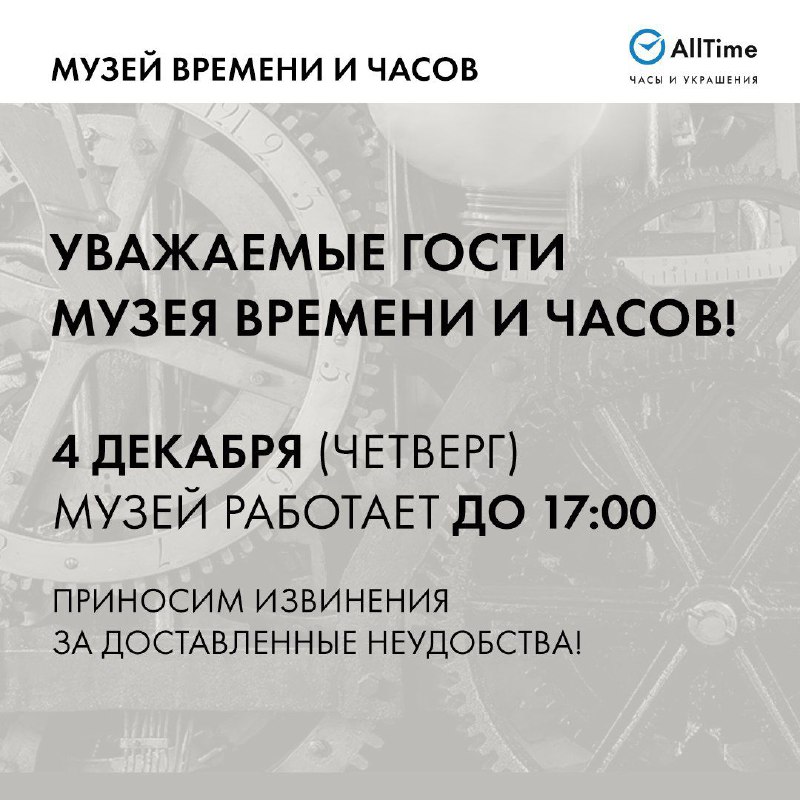 Обращаем Ваше внимание, что 4 декабря (четверг) Музей работает до 17:00.