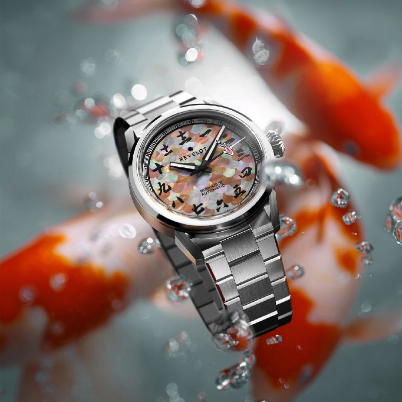 Продолжаем путешествие с часовым уклоном. Марка Revelot родом из Малайзии 6 января откроет продажи лимитки Nishikigoi, посвященной карпам кои. Перламутровой "чешуей" выложили циферблат. Сама рыбка - на секундной стрелке и на задней крышке, за которой скрыт механизм Miyota 9039 с запасом хода 42 часа. 300 экземпляров.