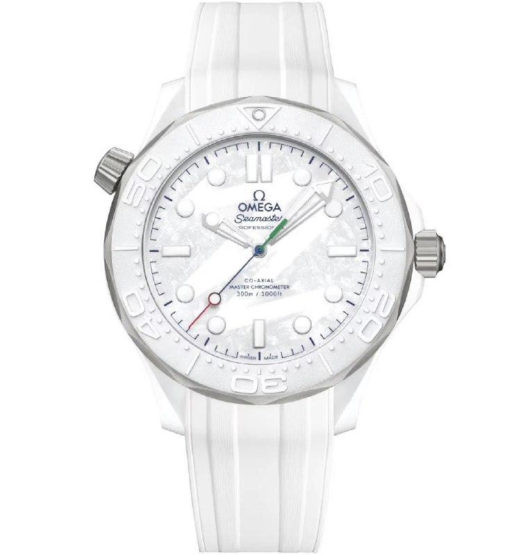 • Часы выпущены к Паралимпийским зимним играм 2026 года. Модель основана на современной керамической версии коллекции Omega Seamaster Diver 300M, представленной ранее как сочетание белой керамики и титана. Паралимпийская версия отличается оформлением циферблата и цветом секундной стрелки, которые связаны с символикой игр