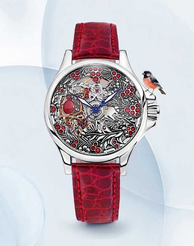 Лимитированные NIKA EXCLUSIVE «Снегири» — всего 3 уникальных экземпляра. Ручной художественный рисунок под сапфировым стеклом: снегири на рябиновых ветвях, украшенные эмалью и кристаллами. ❄️