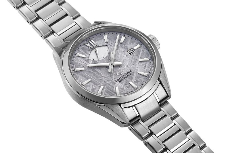 Orient отпраздновала 75-летие в прошлом году, в этом настала очередь премиального направления Orient Star (ему тоже 75). В честь юбилея выпустили M34 F8 Date Meteorite Dial. Буква М в названии - указание на связь модели с космосом (так, M34 связаны со Скоплением Персея, M45 – с Плеядами, а M42 - с созвездием Ориона). Создатели новинки связывают свое произведение с метеорным потоком Персеид. В итоге часы получили циферблат из метеорита с характерной вильдманштеттевой структурой. Размер корпуса 40 х 12,9 мм. На "12" - индикатор запаса хода автоматического механизма собственного производства F8N64 с 60-часовым запасом энергии и заявленной точностью +15/-5 секунд в сутки. Лимит 255 экземпляров.