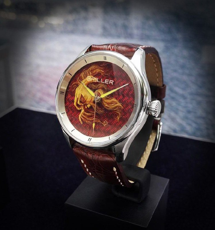 В Музее Времени и Часов на выставке, приуроченной к празднованию Китайского Нового года — «Бег времени: символ года в часовом искусстве», — была представлена новая модель BRILLER «Огненная лошадь». Это эксклюзивная лаковая миниатюра ручной работы, выполненная в технике гильоше, созданная Викторией Синельниковой и Алексеем Лавлинским.