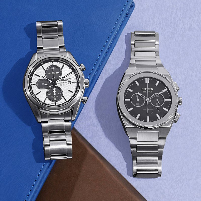 Сегодня у нас два японских хронографа, два легендарных бренда, две солнечные технологии.