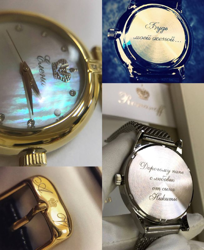 циферблат, гравировка пожеланий с обратной стороны часов или гравировка