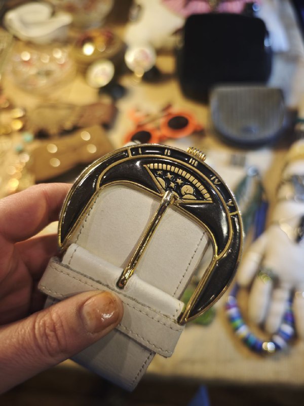 На блошином рынке попалась забавная пряжка. Часы с лунным календарем.