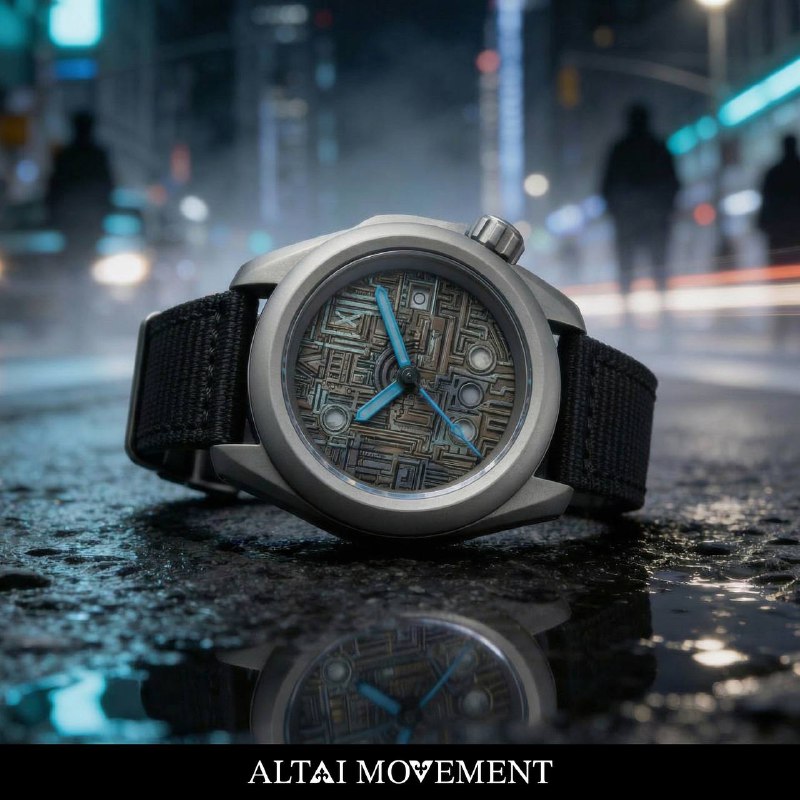 «Дыхание мегаполиса» — новая экспериментальная модель ALTAI MOVEMENT, вдохновлённая ритмом большого города. Титановый циферблат полностью изготавливается вручную: каждая линия, углубление и текстура вырезаются кропотливо, без шаблонов и повторов. Рисунок напоминает сложную схему города — с маршрутами, узлами и пересечениями, которые постоянно находятся в движении.