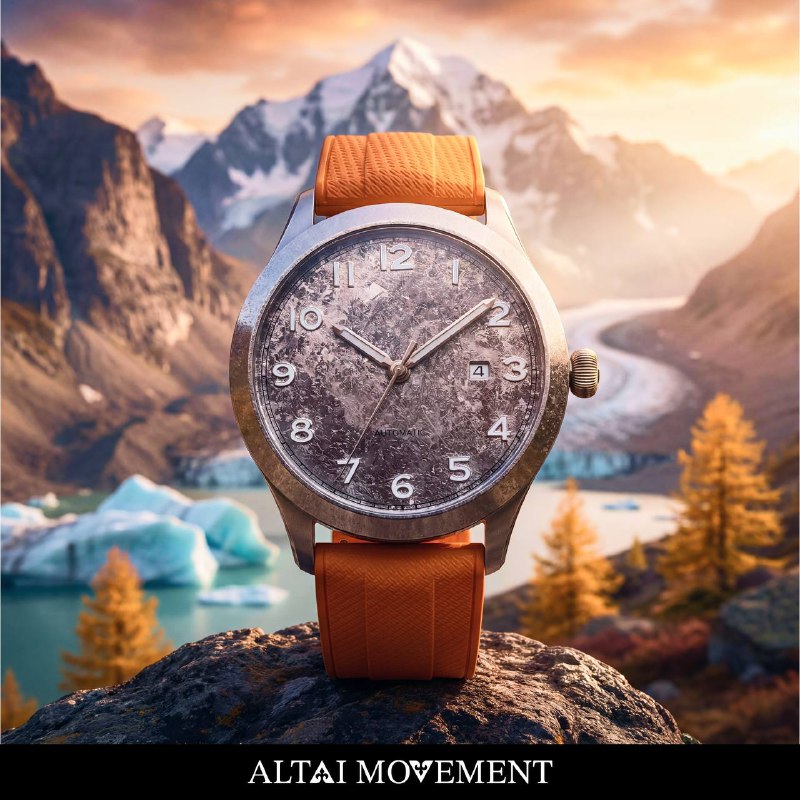 Модель из коллекции «Краски Алтая», вдохновлённая природной палитрой алтайской осени. Каждый оттенок на циферблате — результат сложной электрохимической обработки, без применения краски.