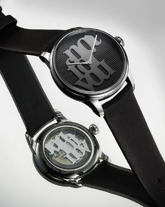 Угадать бренд невозможно. А это новинка от Louis Erard, созданная совместно с работающей в Берлине художницей Моникой Бонвичини. Часы с говорящим названием Not for you, выпущенные с лимитом 178 экземпляров, представлены в стальном корпусе 39 х 12,82 мм и посвящены инсталляции Бонвичини со светящимися лампочками и аналогичной надписью. В часах надпись появилась на черном циферблате на фоне Clous de Paris. Внутри - Sellita SW 261-1 с запасом хода 38 часов. 3 900 франков.