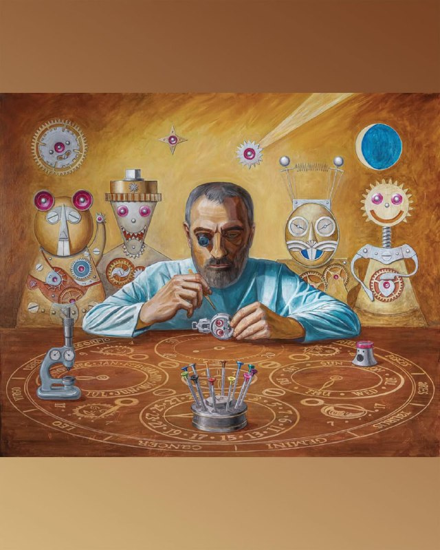 Друзья, спешим раскрыть информацию об одном из ключевых лотов аукциона Ineichen, который состоится 13 декабря 2025 года в Цюрихе! Это – новейшее полотно часовщика и художника Константина Чайкина. Работая над сюжетом, автор вновь обратился к аллегорическому автопортрету.