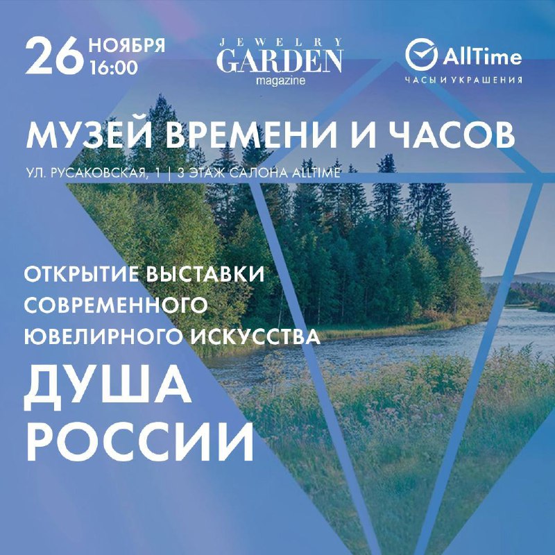 Музей Времени и Часов приглашает 26 ноября (среда) в 16:00 на открытие выставки современных авторских украшений российских дизайнеров «Душа России», приуроченной к 20-летнему юбилею культового журнала JEWELRY GARDEN.