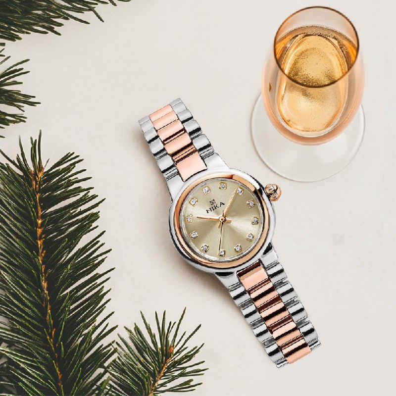 Золотое шампанское розе с серебристыми пузырьками — с такой роскошью ассоциируются NIKA LADY в этом цветовом решении. Носите время как украшение – эти часы созданы, чтобы блестеть! 💫