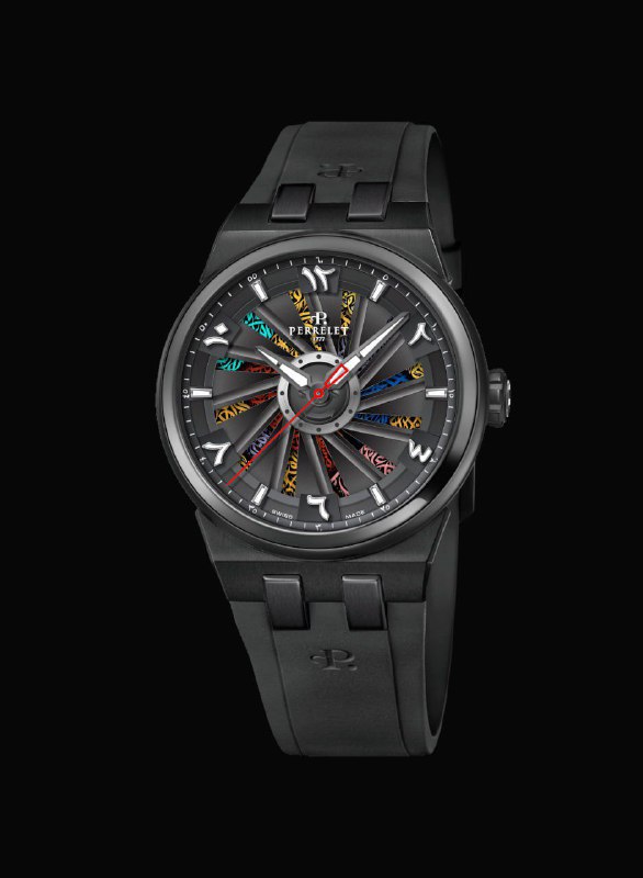 Яркая новинка Perrelet, представленная в Дубае: новые часы Perrelet X Diaa Allam с фирменной турбиной созданы в сотрудничестве с эмиратским художником-каллиграфом Диаа Алламом.