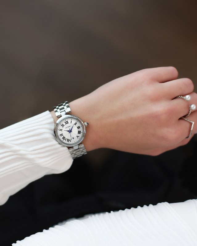 Эти элегантные женские часы с диаметром 30 мм имеют минеральное закаленное стекло и водонепроницаемость 3 АТМ. Японский кварцевый механизм обеспечивает точность, а римская оцифровка и стальной браслет придают классический вид.