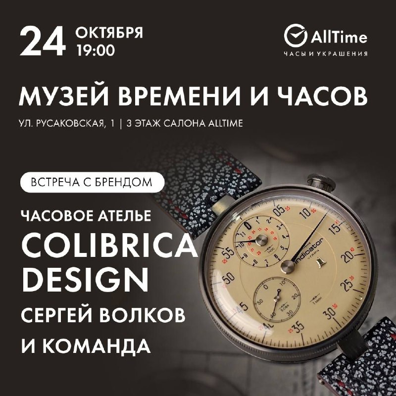 Музей Времени и Часов приглашает 24 октября (пятница) в 19:00 на встречу с основателем бренда Colibrica Design Сергеем Волковым и его командой.