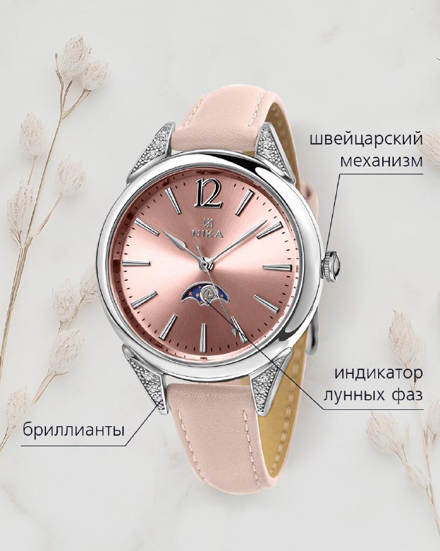 Когда вам всегда помогает Луна. Будьте всегда в курсе положения спутника, чтобы планировать дела и завершать их успешно и легко. NIKA MOON ROSE с индикатором лунных фаз в виде розового бутона подскажет лучшее время. 🌸
