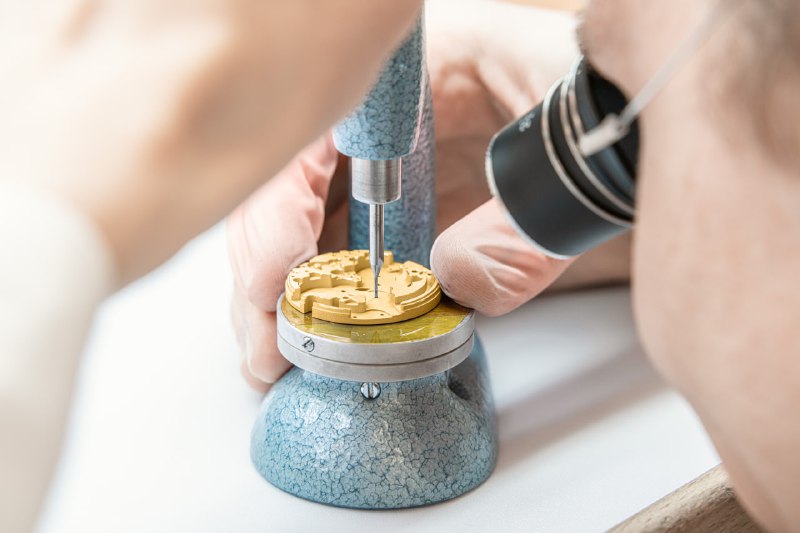 Калибровка – это операция, при которой мастер вручную доводит просверленное или отфрезерованное отверстие до точного диаметра. В часовом механизме много деталей имеют отверстия под камни, оси, винты и т.д. При изготовлении комплектующих отверстия под посадки намечают заранее, обычно с небольшим припуском по диаметру. Затем деталь попадает на развертку: отверстие вручную доводят до точного размера, снимая тонкий слой металла, толщина которого порой может составлять всего несколько микрон.