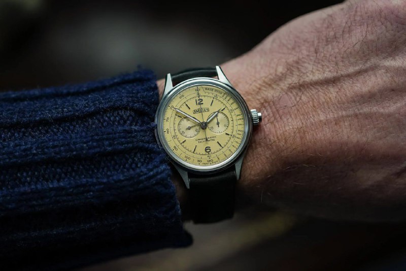 Для поклонников ретро-стиля - замечательные Montre de Souscription 5 Angelus Chronographe Tachymetrè, созданные Angelus для портала Monochrome. Модель с двумя счетчиками и с телеметрической шкалой основана на Angelus Chronographe Télémètre и вдохновлена хронографами 1950-х. Часы выпущены в корпусе из стали 37 х 9,25 мм с циферблатом оттенка светло-желтого золота (главная фишка этой модели). Внутри - калибр A5000 от La Joux-Perret. Механизм с ручным заводом с горизонтальным сцеплением и колонным колесом работает с частотой 21600 пк/ч и обладает 42-часовым запасом хода. 20 экземпляров по 18 500 евро.