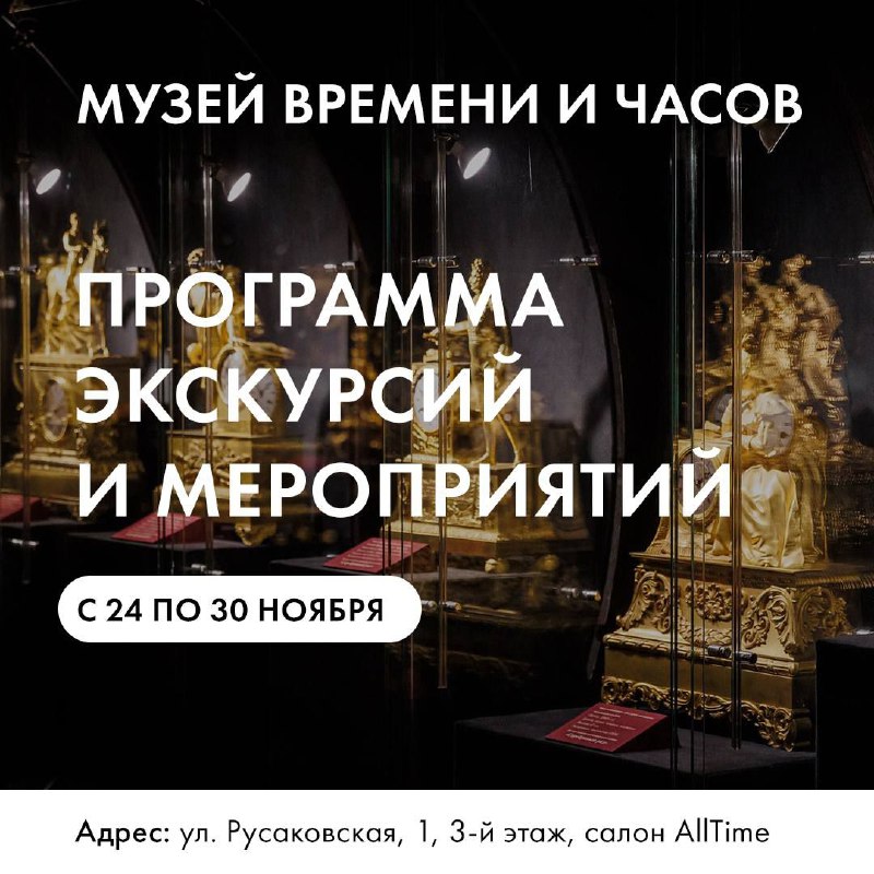 Публикуем расписание обзорных экскурсий по постоянной экспозиции Музея Времени и Часов для индивидуальных посетителей в составе сборных групп на следующей неделе (24-30 ноября):