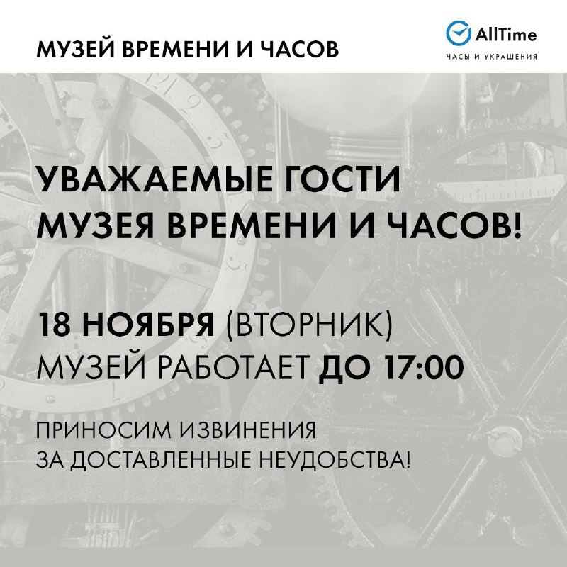 Обращаем внимание, что 18 ноября (вторник) Музей работает до 17:00.