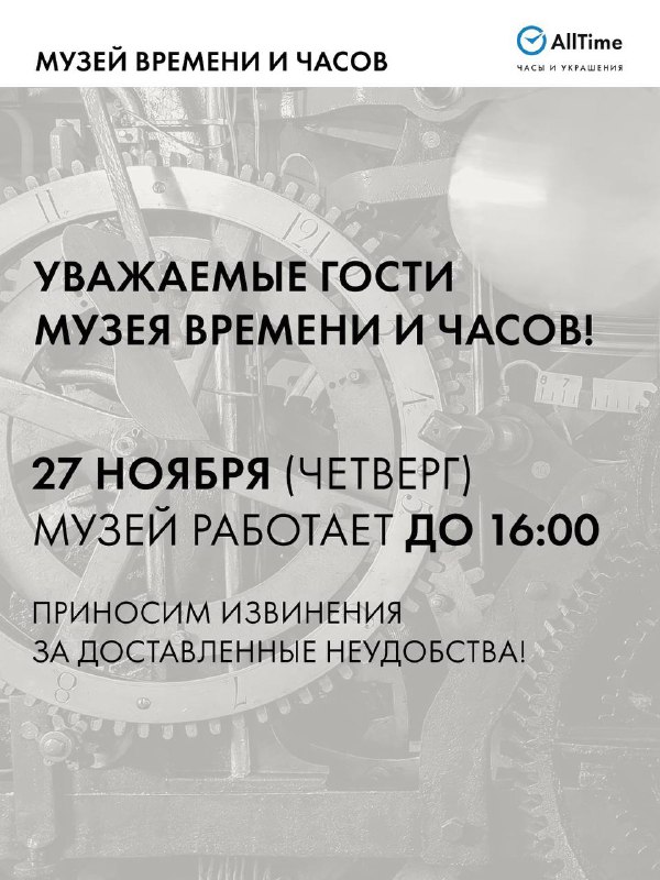 Обращаем Ваше внимание, что 27 ноября (четверг) Музей работает до 16:00.