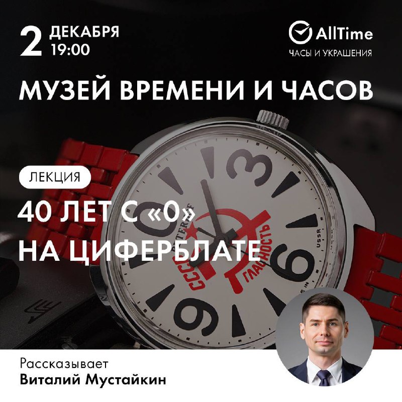 Музей Времени и Часов приглашает 2 декабря (вторник) в 19:00 на лекцию исследователя советской часовой промышленности и коллекционера Виталия Мустайкина «40 лет с "0" на циферблате».